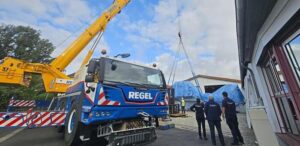 Bauleiter Bernhard Klöpfel war am Samstag mit den Arbeitsbedingungen sehr zufrieden: Sonnenschein, keine Wolken, kein Wind – das bedeutete für seine Arbeiter gute Sicht und keine Gefahr beim Verlegen von sieben je 36,5 Meter langen und 85 Tonnen schweren Spannbetonteilen, die künftig die Fahrbahn tragen sollen. Diese Streben wurden mit zwei Spezialkränen von Schwerlasttransportern gehoben und zwischen zwei Widerlager eingepasst. Pro Betonfertigteil wurde mit einer Arbeitszeit von einer bis eineinhalb Stunden gerechnet. Doch wichtig war jetzt nur, dass sie richtig sitzen: „Das ist wie Legosteine im Großen“, scherzte Klöpfel.